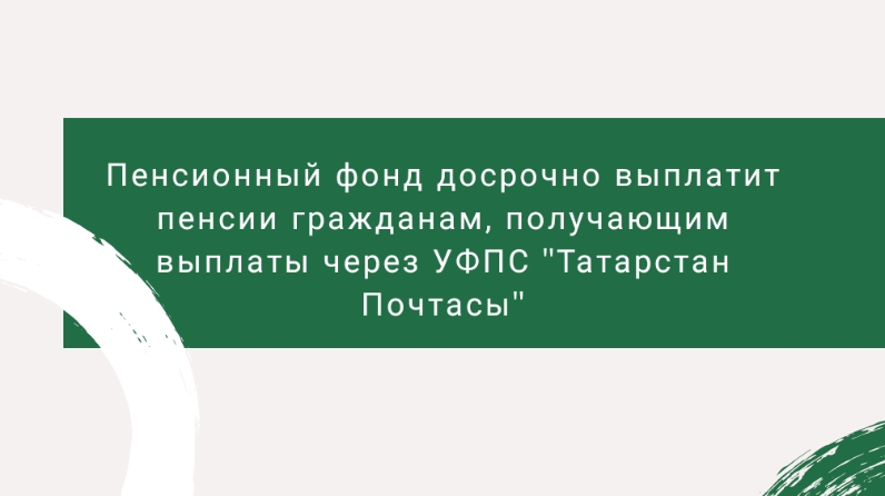 Выплаты производятся ранее даты, установленной графиком доставки пенсий, в связи с этим, гражданам, получающим пенсии через УФПС «Татарстан Почтасы», просьба находиться дома, по адресу получения пенсии.