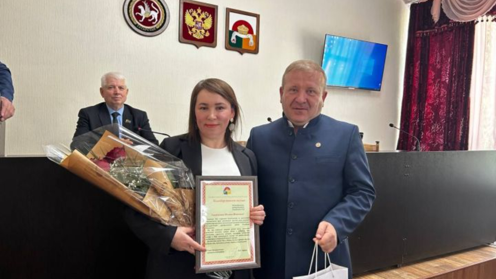 — Спиридоновой Полине Ивановне, индивидуальный предприниматель из села Старый Убей со стажем работы более 20 лет.
