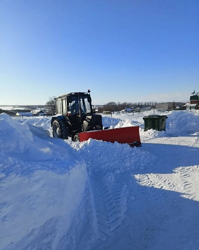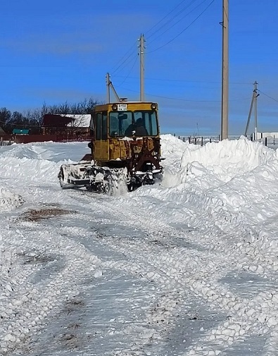 После выпавших сильных снегопадов на территории сельского поселения ведется очистка дороги от снега.