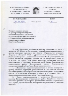 О подготовке документации по проекту планировки и проекту межевания территории для объекта: "Строительство автодороги "Подъезд к с.Татарский Убей"